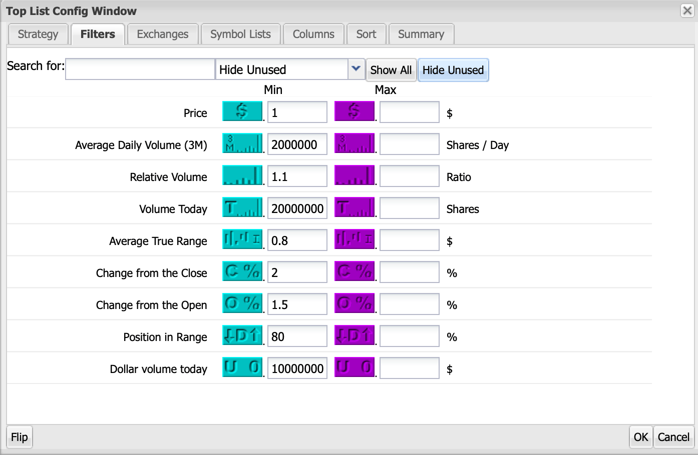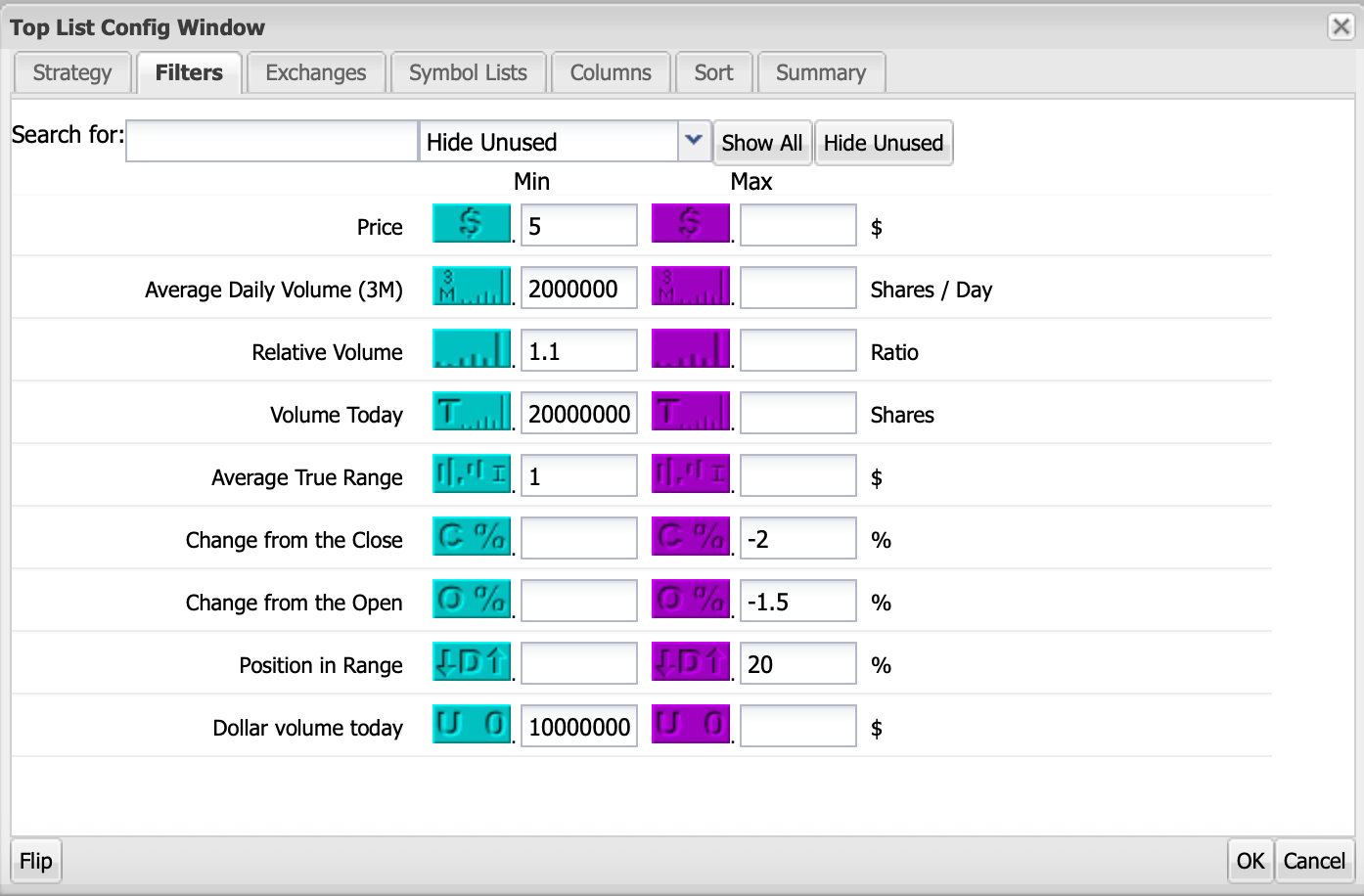 When two indices are reading "Trending Up," I use these two scanners into the close and look for overnight longs: