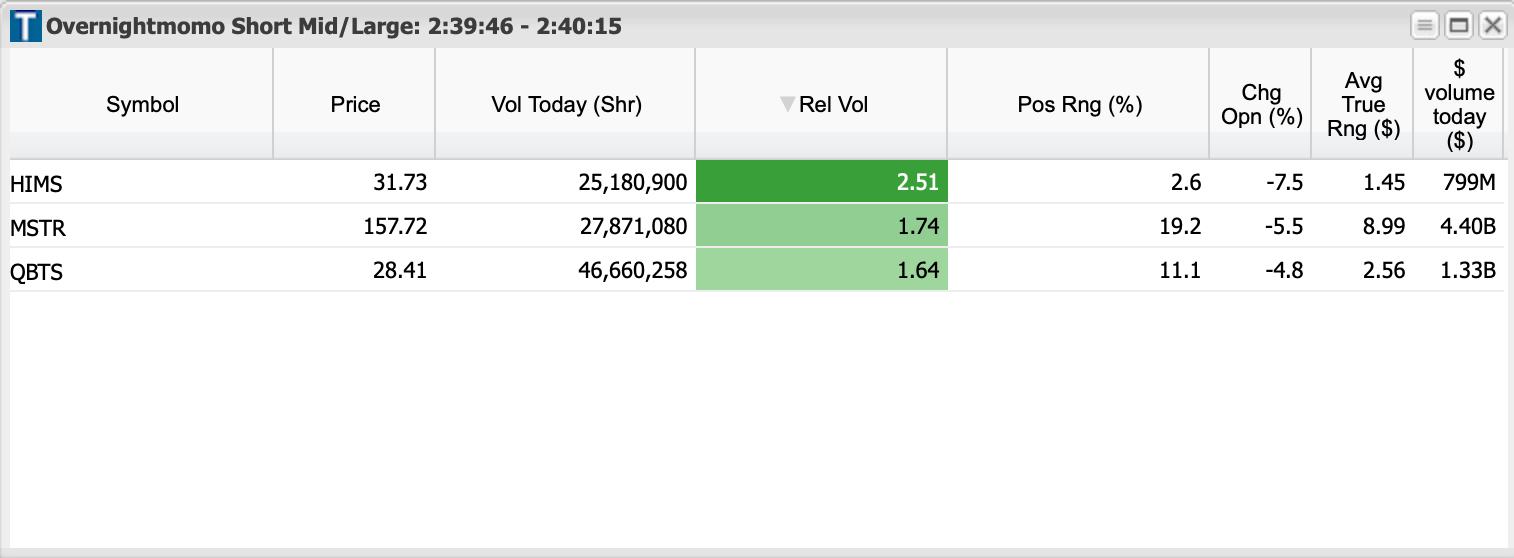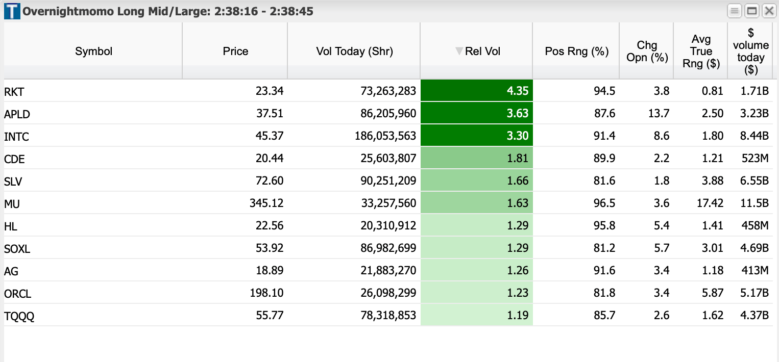 Overnight Momo Long Small Caps - sometimes higher priced names filter through because of rvol being so high. That’s okay!