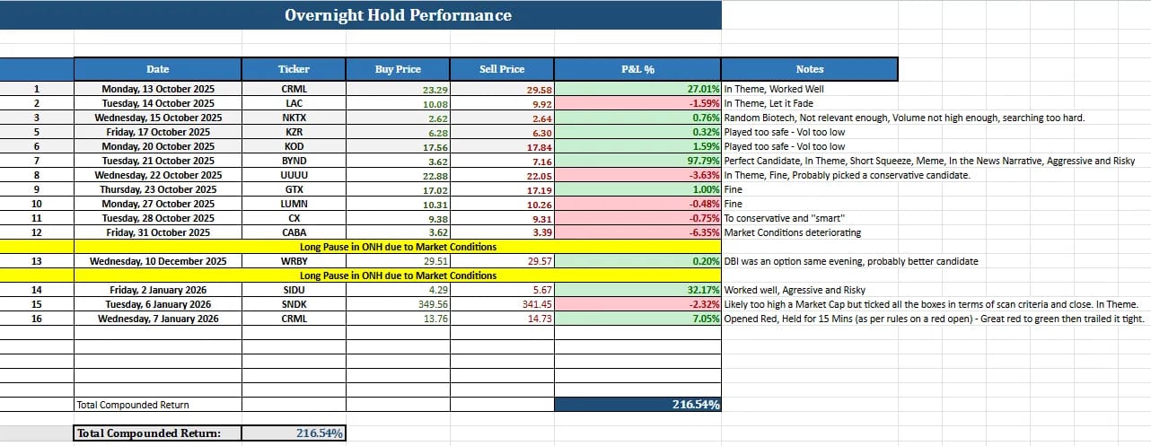 “I've been working on an Overnight Hold Setup for several months. As a low effort secondary setup to go along with my main setup which is Catalyst Trades. Anyway, I mentioned it in a private discord and someone linked me your site (we both took BYND same night). Interested to see any nuance that is discussed here that I may not have figured out on my own with my version of it.”
