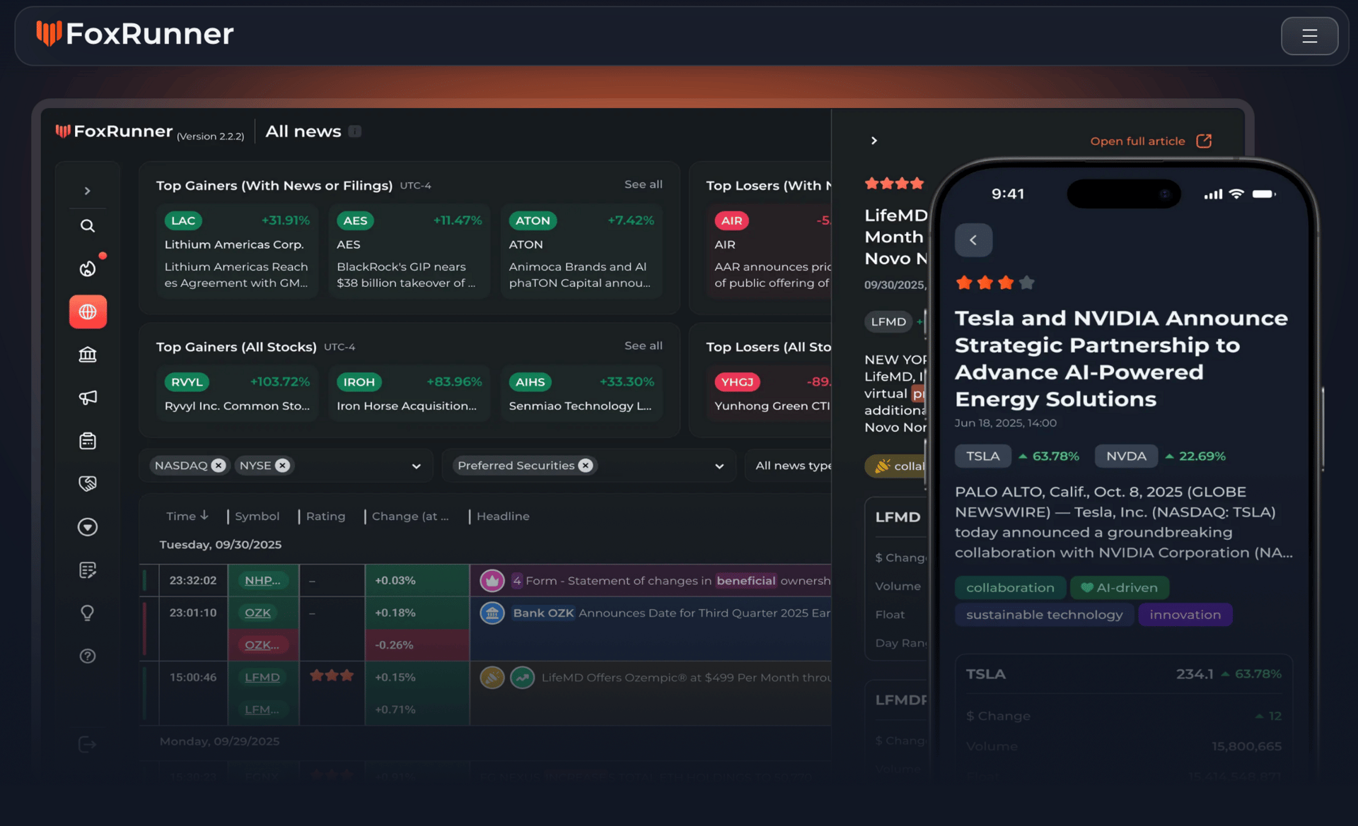 In addition to the desktop application, which is downloadable on any device, FoxRunner has recently launched a mobile app as well, so you never miss an important headline.